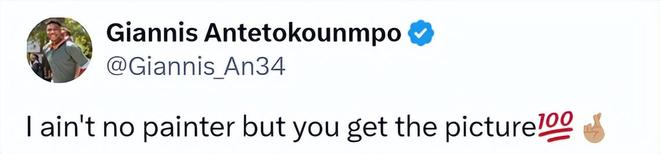 北京时间12月28日,雄鹿球星字母哥更新社媒,晒出了自己在垃圾时间扣篮的照片,并配文写道:“我表达能力有限,但你应该明白我的意思。”